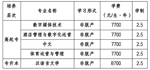 1.学费分年收取,首次缴费在规定时间内完清,高中起点专科、专科起点本科各专业按2.5年收取。